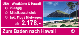 Zum Vergleich: Während ein Deutscher in den Jahren 2001/2002 für 1 EUR lediglich 0,90 USD im Durchschnitt erhielt, so sind es jetzt im Sommer 2009 inzwischen 1,43 USD, dank des gestiegenen Wertes der Euro-Währung. Da USA Reisen in Dollar eingekauft werden und die Dollarpreise für Reisedienstleistungen wie Hotel, Flug, Transfer etc. stark gesunken sind, können Europäer jetzt beispielsweise für 100 EUR viel mehr touristische Dienstleistungen erhalten. Während eine Rundreise 2002 noch deutlich über 2.000 Euro kostete, ist diese nun schon ab 1.299 Euro zu haben. Doch die absolute Amerika Traumreise Nr. 1 ist eine kombinierte 21-tägige Rund- und Badereise durch den Wilden Westen der USA mit anschließendem Badeurlaub auf Hawaii zum Entspannen und Genießen in den letzten fünf Wochentagen dieses Traumurlaubs, der schon ab 2.498 Euro zu haben ist.